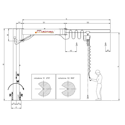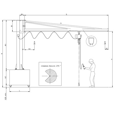 Gru a bandiera o mensola di qualsiasi portata e altezza